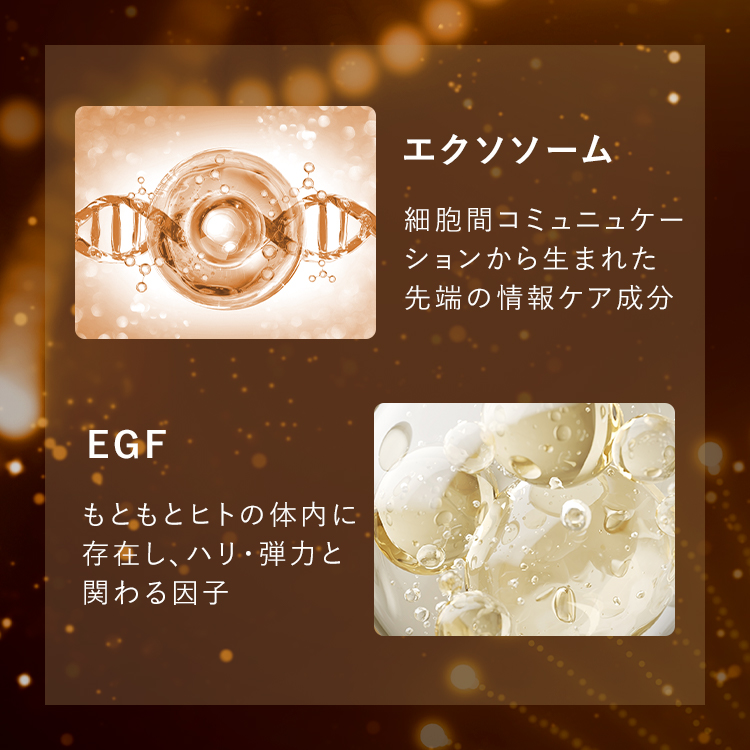 ラウロイルラクチレートNa、クコカルス培養エキス、レシチン、⽔添リゾレシチン、PCA-Na、ムラサキ根エキス、オリゴペプチド-20、ツボクサエキス、アセチルデカペプチド-3、オレイン酸Na、カプロオイルテトラペプチド-3、セラミドNP、デキストラン、ヘキサカルボキシメチルジペプチド-12、ジメチルイソソルバイド、セラミドAP、フィトスフィンゴシン、コレステロール、ジメチルMEA、キサンタンガム、