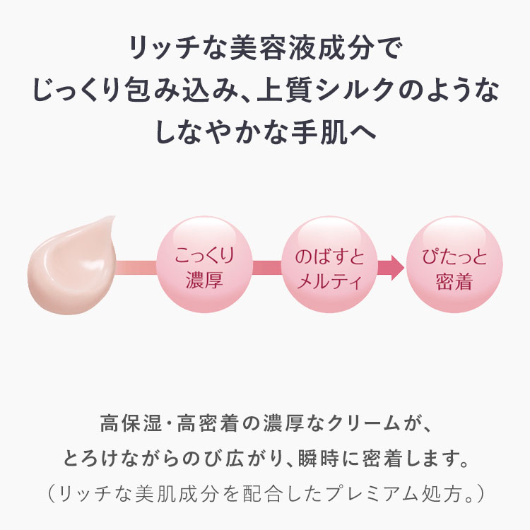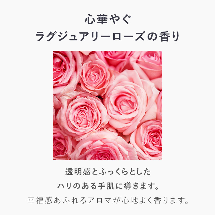 水、水添ナタネ油アルコール、グリセリン、BG、トリエチルヘキサノイン、プロパンジオール、スクワラン、ポリソルベート60、ペンチレングリコール、ステアリン酸グリセリル(SE)、ステアリン酸、ステアリン酸グリセリル、シア脂、ジメチコン、ダマスクバラ花水、センチフォリアバラ花エキス、キサンタンガム、シアノコバラミン、グルコシルヘスペリジン、エクトイン、グリチルレチン酸ステアリル、テトラヘキシルデカン酸アスコルビル、マンニトール、グルタミン酸、(アクリル酸ヒドロキシエチル/アクリロイルジメチルタウリンNa)コポリマー、ゲンチアナ根エキス、フェルラ酸、アロエベラ葉エキス、デキストリン、ワルテリアインディカ葉エキス、プラセンタエキス、クロレラエキス、クズ根エキス、加水分解コラーゲン、グルコン酸Na、カラメル、水酸化K、フェノキシエタノール、香料